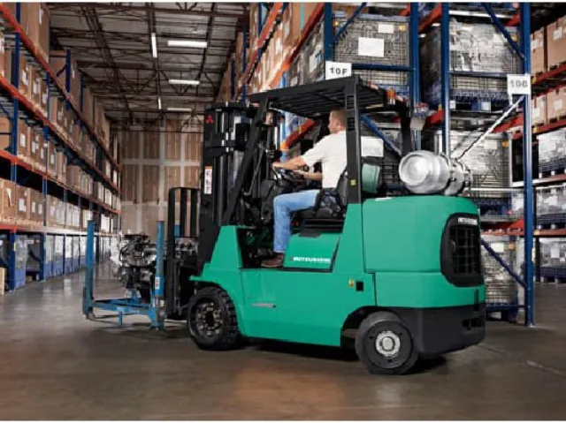 Mitsubishi FGC35K-FGC70K, la serie de montacargas de combustión diseñadas para realizar operaciones en condiciones demandantes en las industrias logísticas y de almacenamiento. Cuentan con un motor a gas LP y una capacidad de carga de hasta 7,000 kg, y horquillos de 2,950 mm de longitud.