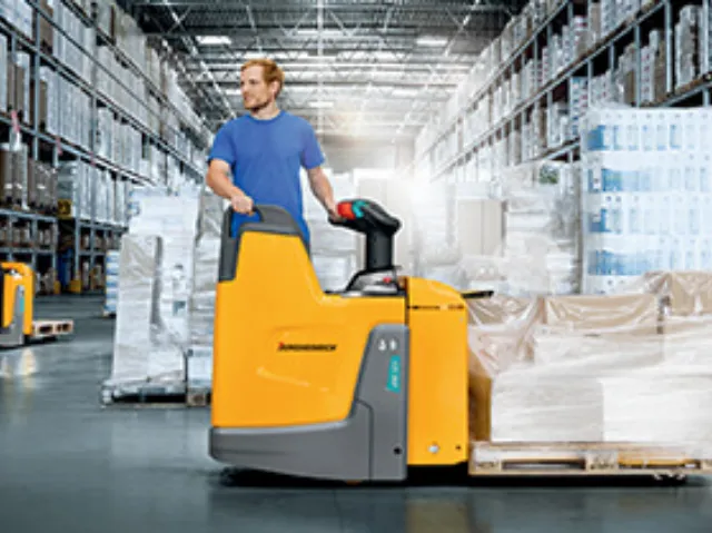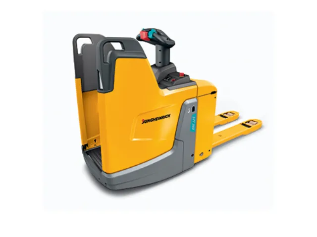 Jungheinrich ERE 125/225/225DP, un patín hidráulico ideal para tareas de carga y descarga de productos o pedidos en aplicaciones de almacenamiento y logística. Esta transpaleta tiene una capacidad de carga de 2,000 kg, con una longitud a punta de horquilla de 493 mm, y una altura máxima de 205 mm, con una velocidad de accionamiento de hasta 14 km/h. Ofrece una operación más productiva y con gran eficiencia energética, gracias a su tecnología de accionamiento progresivo y sus componentes electrónicos de control.