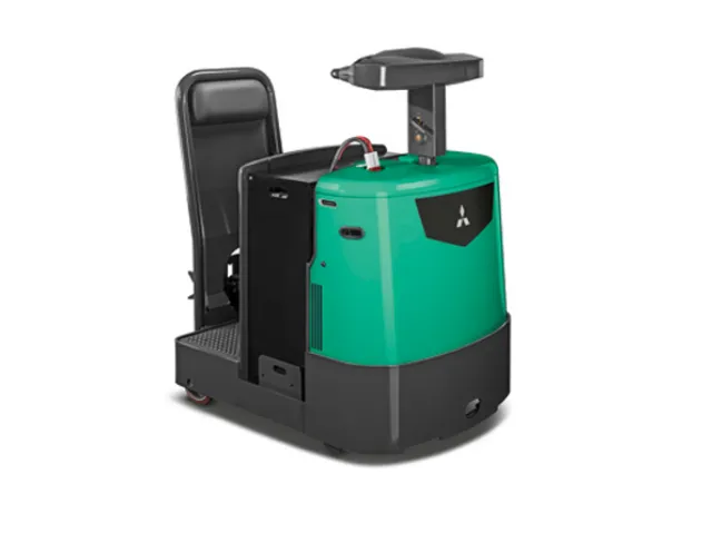 Mitsubishi PMT45M, un tractor de arrastre diseñado para realizar operaciones de manera más eficiente en almacenes e instalaciones logísticas. Este patín hidráulico ofrece una capacidad de carga de rodamiento de hasta 4,535 kg, con una velocidad de desplazamiento de hasta 14.6 km/h, gracias a su potente motor eléctrico de 24V.