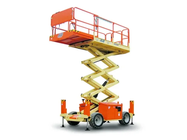 La JLG 260MRT es una plataforma de tijera para terrenos difíciles, con una altura máxima de trabajo de 9.92 metros y capacidad de carga de 570 kg. Cuenta con tracción en las cuatro ruedas y un sistema de nivelación automática para mayor seguridad en superficies irregulares.