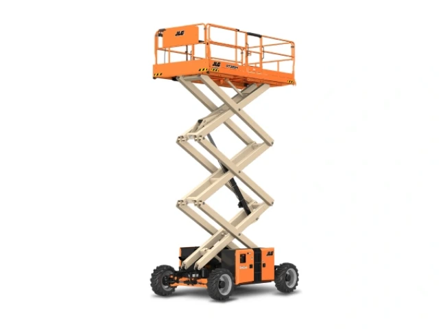 La JLG 3394RT alcanza una altura de trabajo de 12 metros con una capacidad de carga de 1,020 kg, lo que la convierte en una plataforma de tijera ideal para proyectos de construcción, montaje estructural o instalaciones a gran escala.